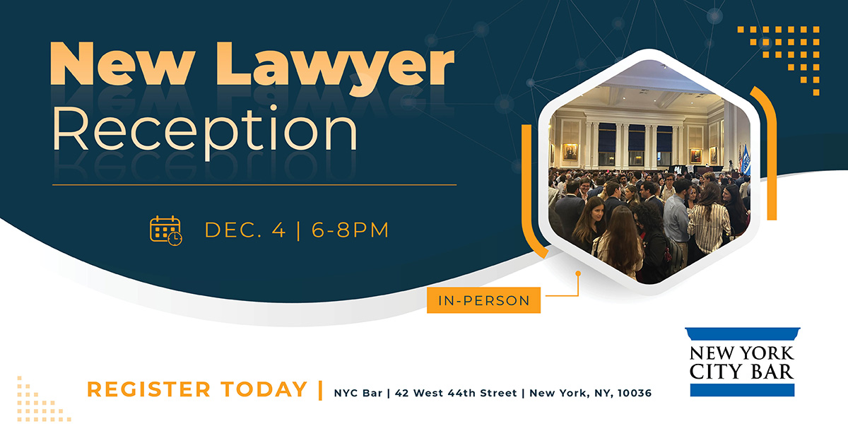 Newly admitted attorneys, recent law school graduates and mentors are invited to join us for an evening of hors d’oeuvres, drinks and fellowship with your peers. Whether you’ve just passed the bar or you’re gearing up to take it in February, the New York City Bar Association wants to celebrate this big moment with you!